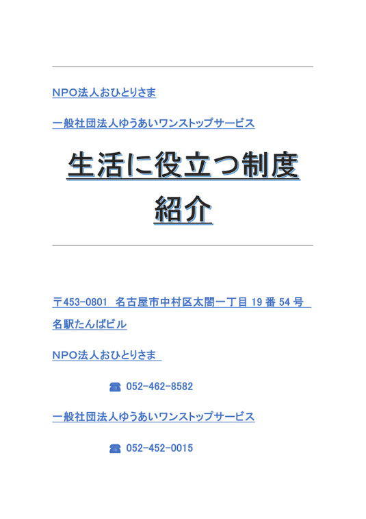 「NPO法 人おひとりさま」 ☎052-462-8582